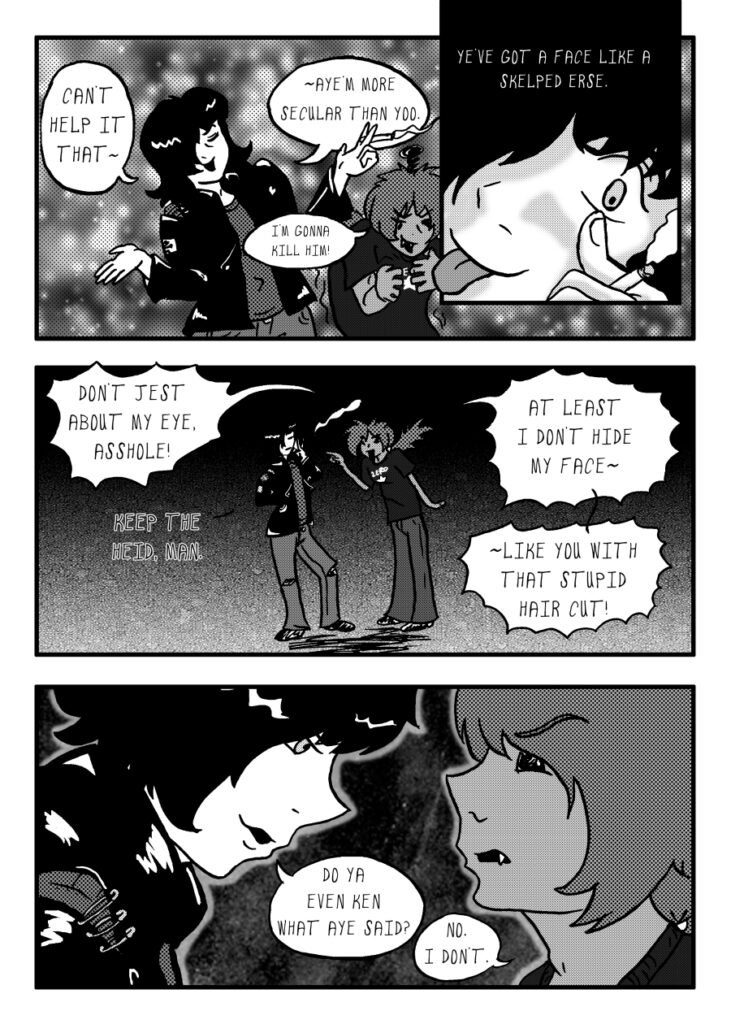 “Ye’ve a face like a skelped erse”